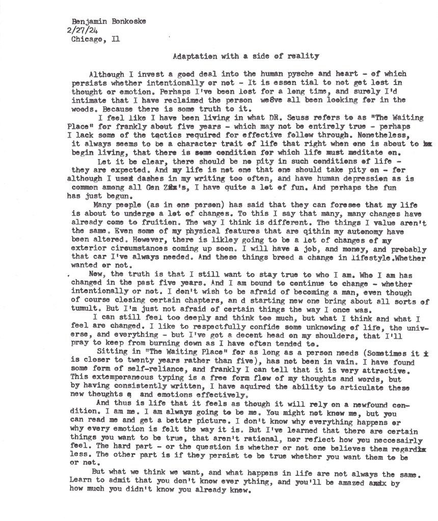 p.s I was type happy tonight, but the purpose of this writing exercise is to slow down, so apologizes for the guerrilla style writing tonight. Next week, I’ll be sure to be punctual.