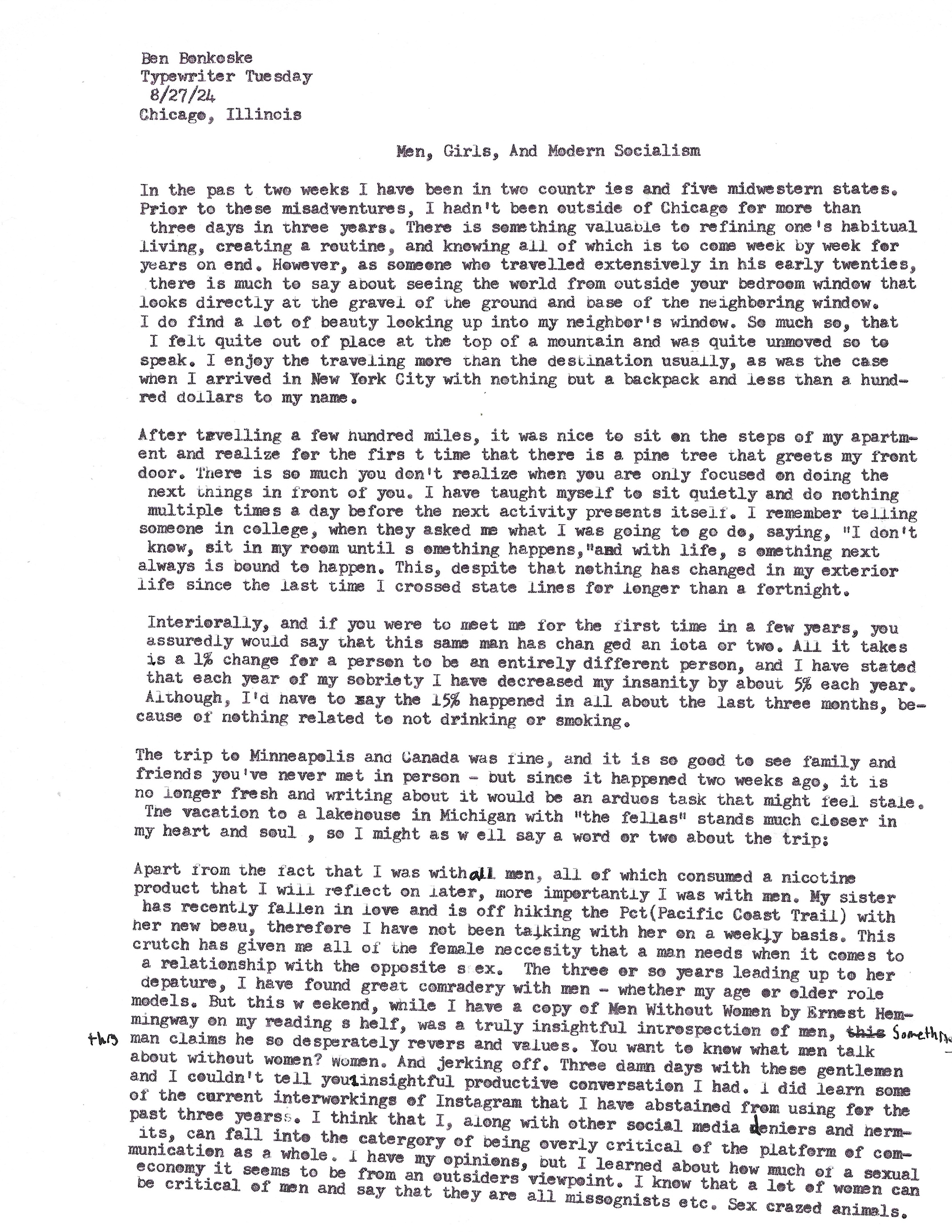 Men Women and Socialism – Typwriter Tuesday 8/27/24
