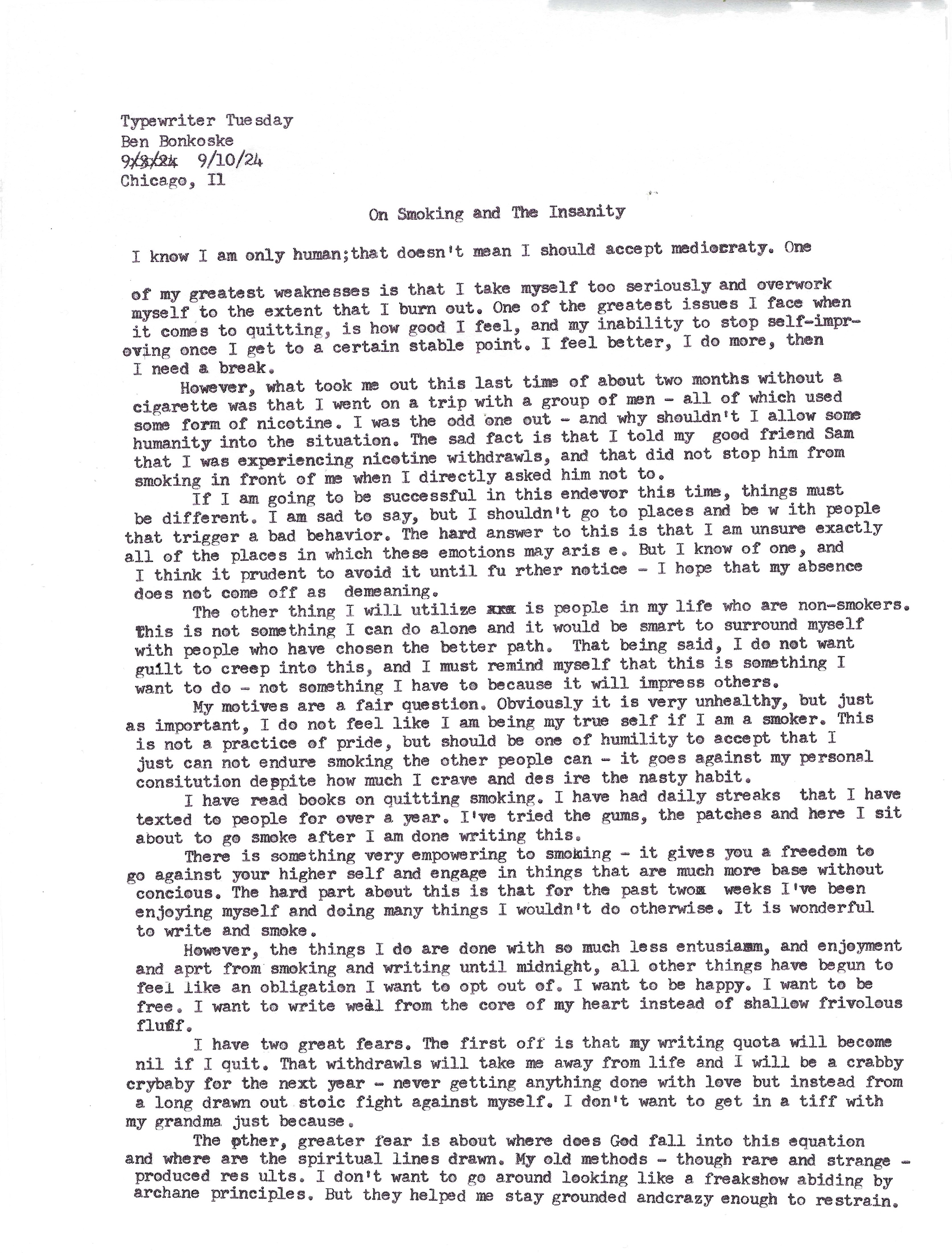 Typewriter Tuesday – On Smoking and The Insanity