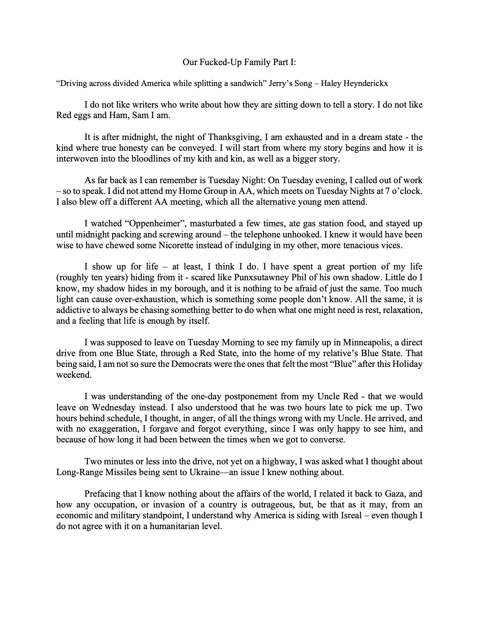 This is going to be a part of a series. It is a creative non-fiction essay. This first part will be free.