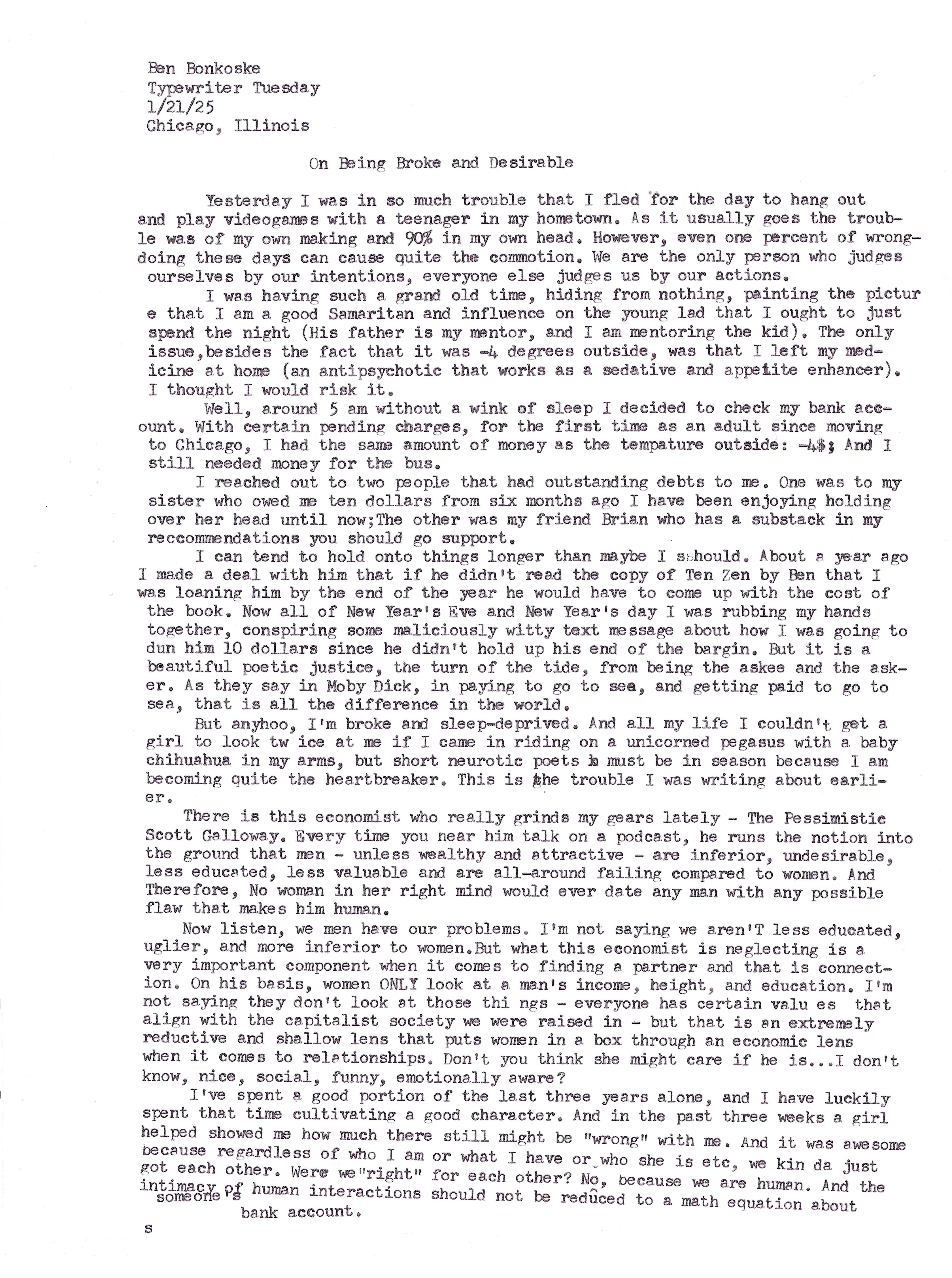 Typewriter Tuesday – On Being Broke and Desirable