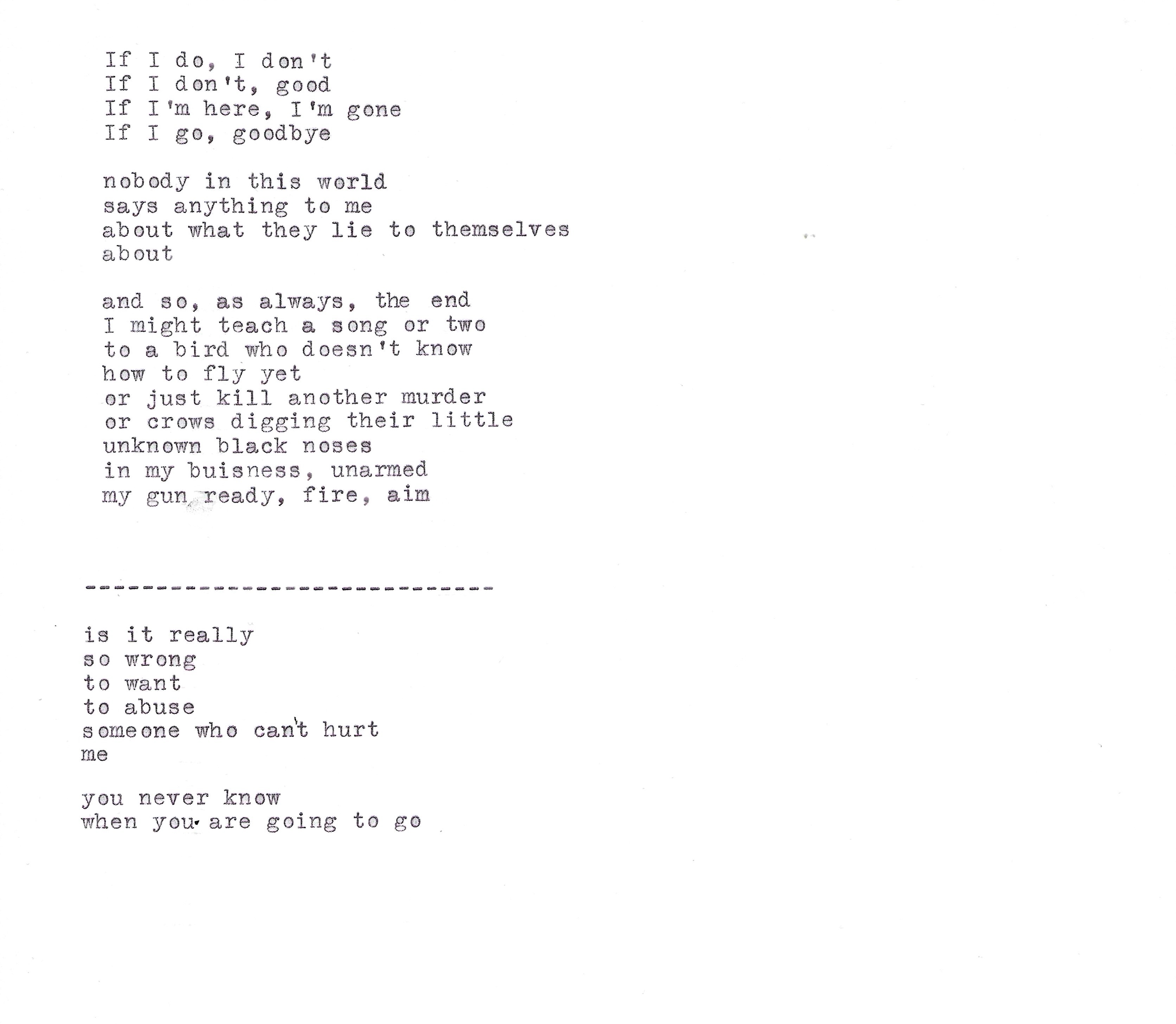 I am not afraid of the pain, I am in love with it. I’m tired of writing words to fill the absence of pain. I lost my scarf tonight. I hope I let it go. It’s not a love story, it just looks like one.