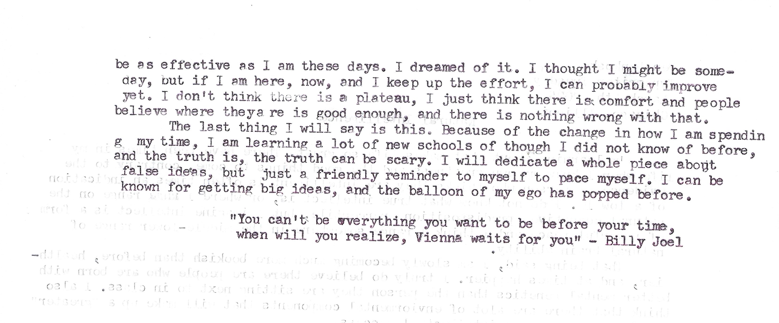 Well Sobriety, if I need a scapegoat word to explain it, it provokes the performance but takes away the desire. What a miserable life to be so happy and well learned without any new experience to share. And I suppose, I resort to looking back into the past for more water from its drying well.
