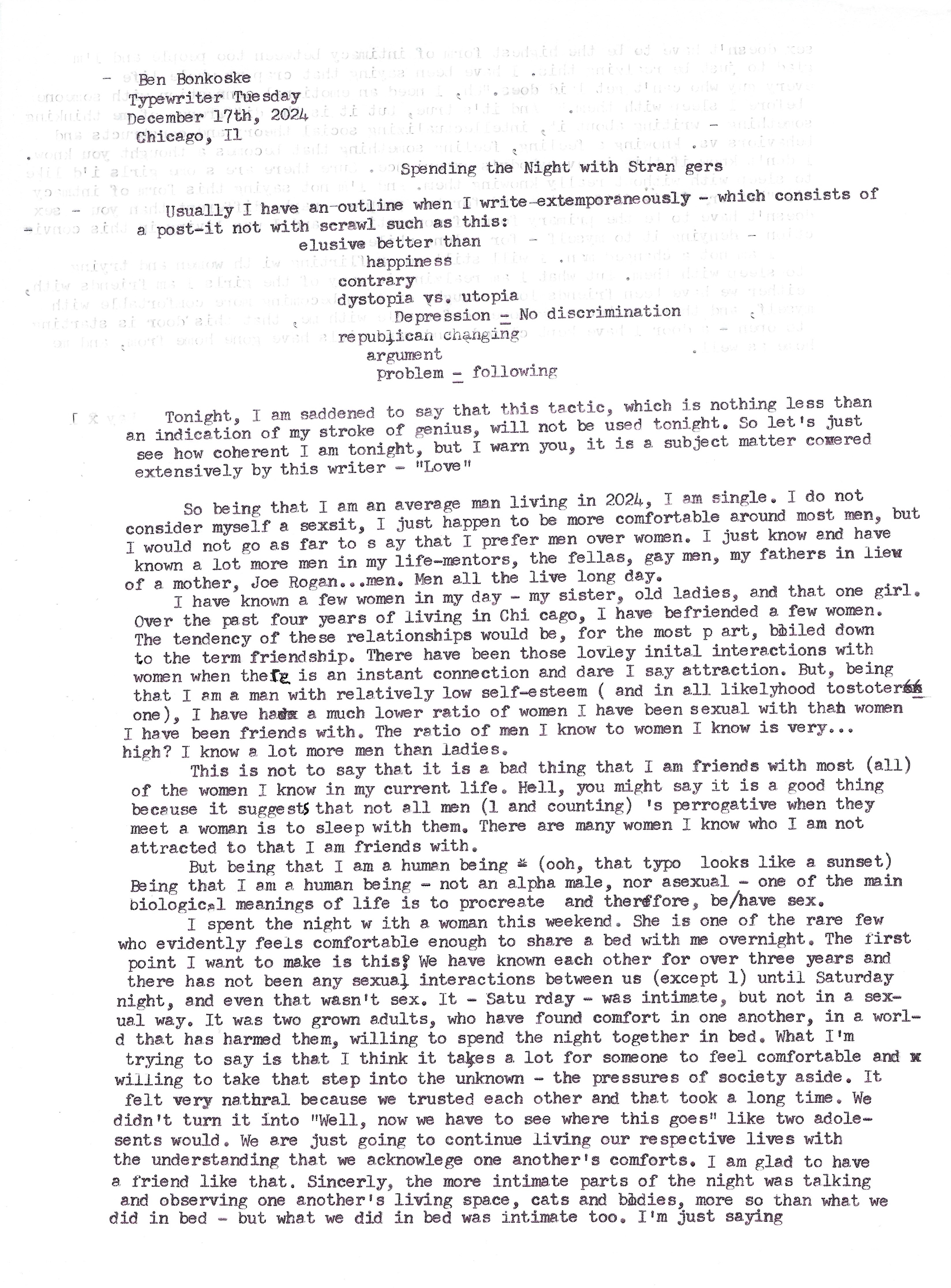 Ben Bonkoske is the author of two novels, Spoon in the Road, and Carolina, Colorado, California. He is also the author of two collections of short stories, Ten Zen by Ben, and Eleven Stories for 11:11. He wrote his own major at the University of North Carolina, Asheville focusing on Racial Tension in America. He attended Northeastern, Illinois University where he earned a Masters of Arts in Secondary Education. He lives in Chicago, where he likes to take walks.