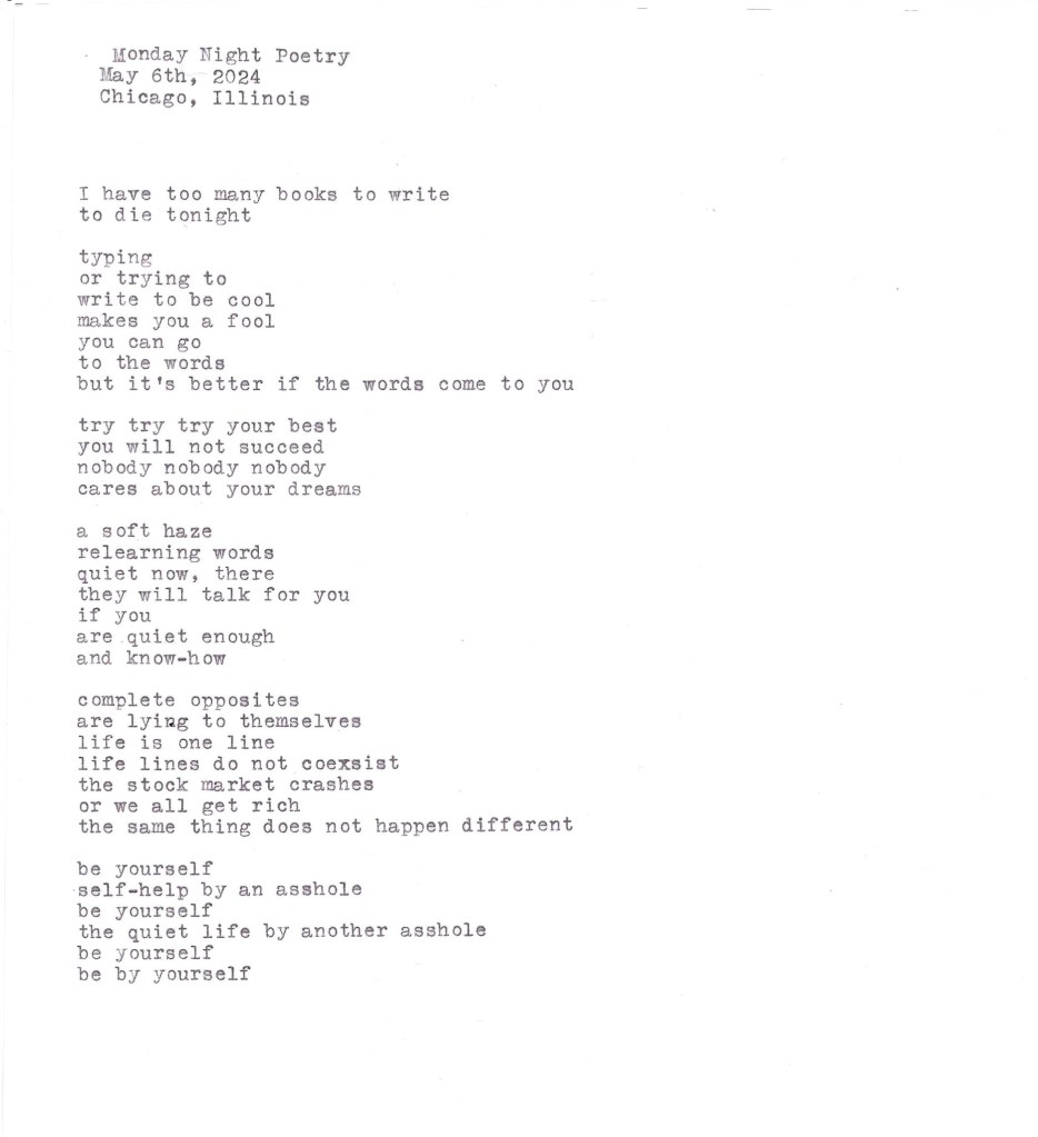 But that’s why I’m all butt hurt and dead inside. I just can’t live with myself when I just don’t feel like I have anything to write that actually will change the world. I am the same as every shmo who writes his little words on his little pretend platform without moving anyone.